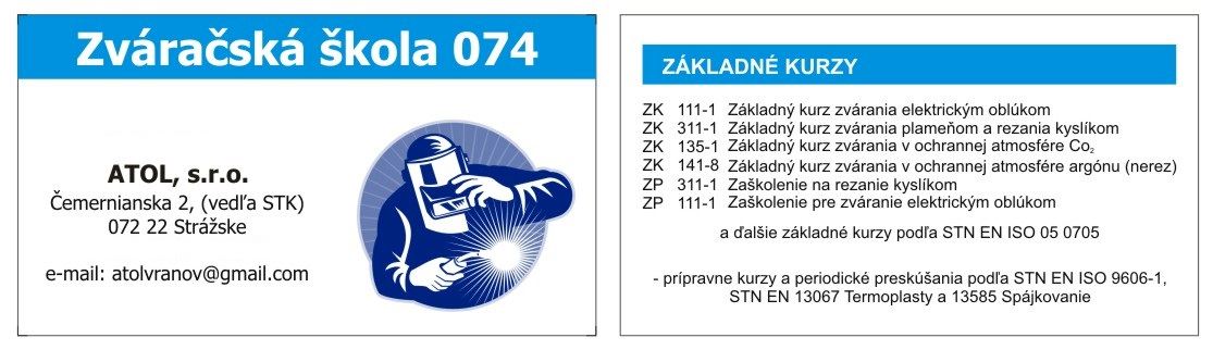 Podľa STN EN 13067 — odborná príprava zváračov termoplastov v teoretickej a praktickej časti. Kurz vedie technológ ZŠ s kvalifikáciou technológa zvárania plastov.